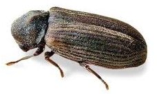 ►Een volwassen gewone houtwormkever is 2.5 tot 5 mm, donkerbruin en heeft een gewelfd schild.