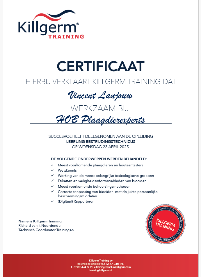 Licenties IPM Knaagdierbeheersing Binnen 2023 :
